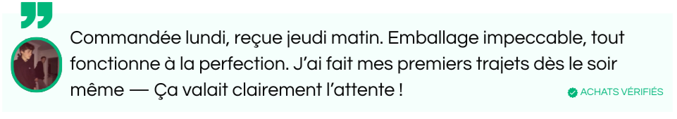 Je cherchais une alternative a la voiture pour mes trajets pro, et cette trotinette a change ma routine. Legere, puissante et tres bien finie. Livraison rapide, service client reactif.